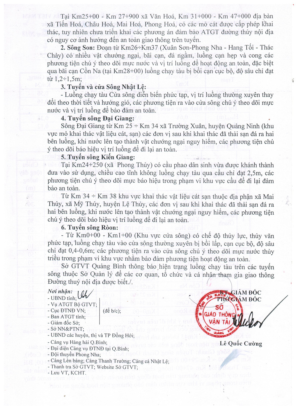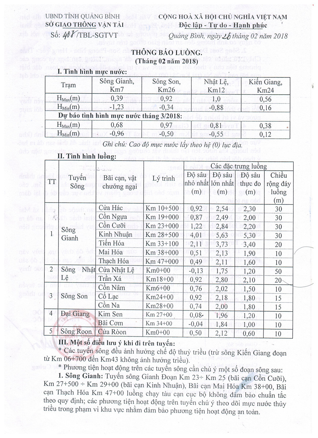 Thông báo luồng Đường thủy nội địa tháng 02/2018